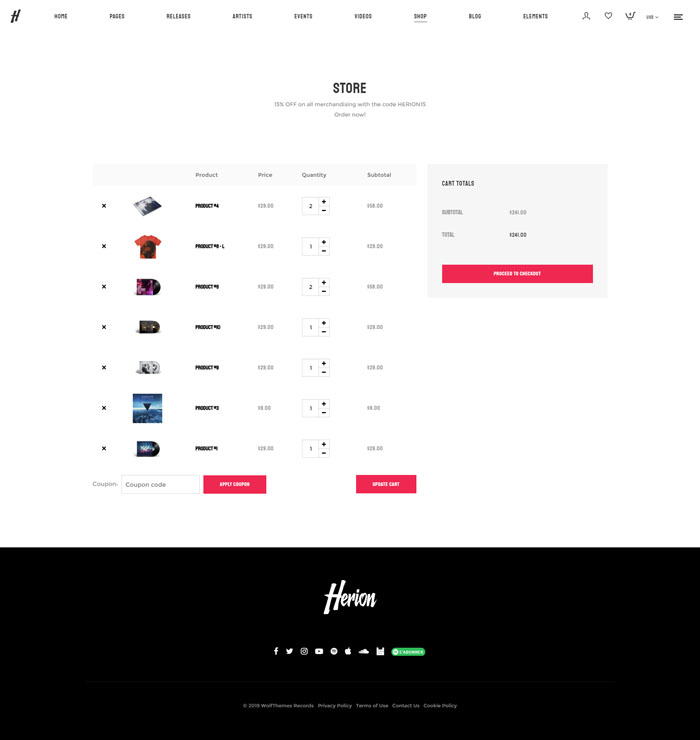 Sell your merch online using the most powerful and secure e-commerce WordPress theme: WooCommerce. Herion is built to integrates WooCommerce smoothly in its design.